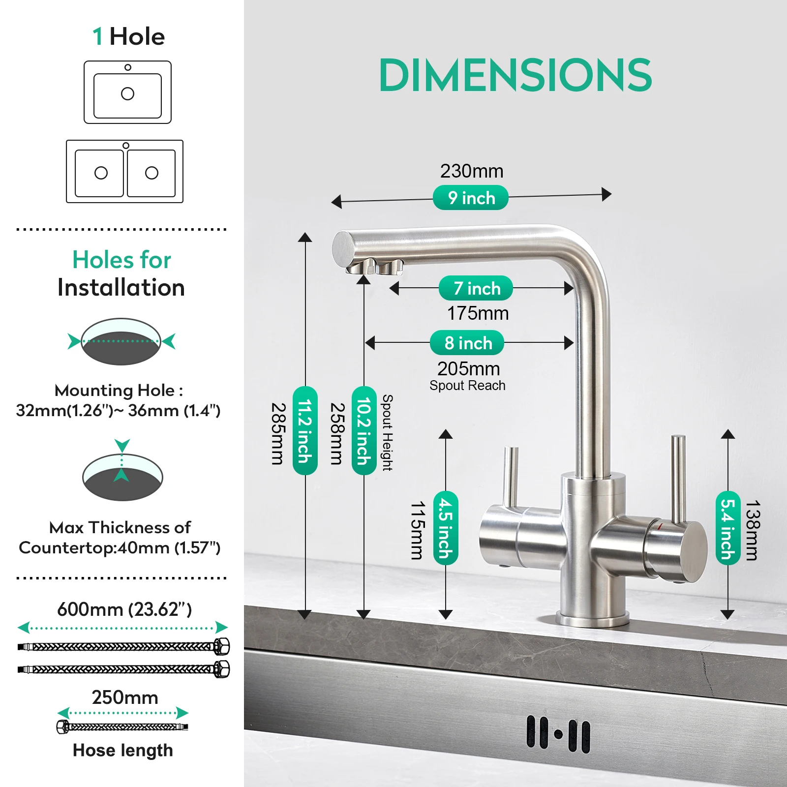 109212 Germany Market Low Pressure Reverse Osmosis Water 3 Way Kitchen Faucet